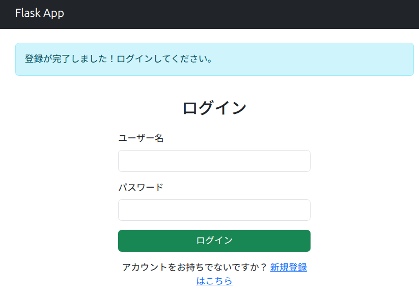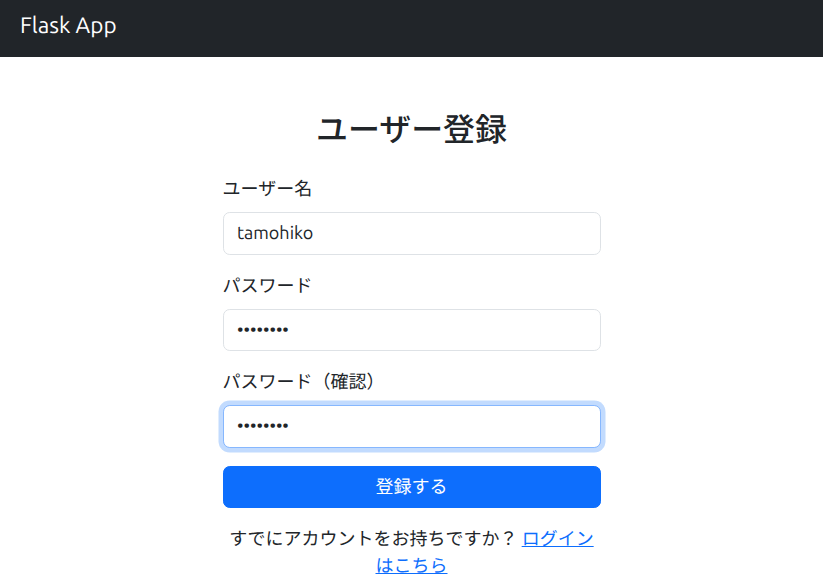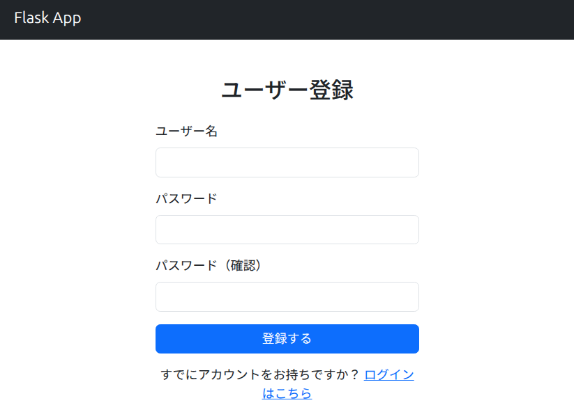 すでにアカウントをお持ちですか? <a href="{{ url_for('auth.login') }}">ログインはこちら</a>